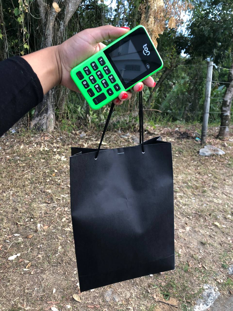 Pedidos locais maiores: enviados em sacola de papel preta, sem descrição externa.